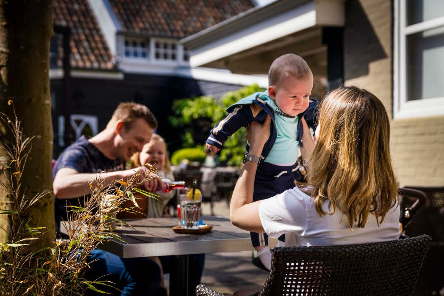 Het karakteristieke pand uit 1800 ademt nostalgie, ons onlangs vernieuwde interieur geeft de zaak een unieke en sfeervolle uitstraling. In de groene binnentuin is een kleine zonnestraal al genoeg om op ons terras te kunnen genieten van koffie met huisgemaakte appeltaart, een heerlijke lunch of een gezellige borrel.